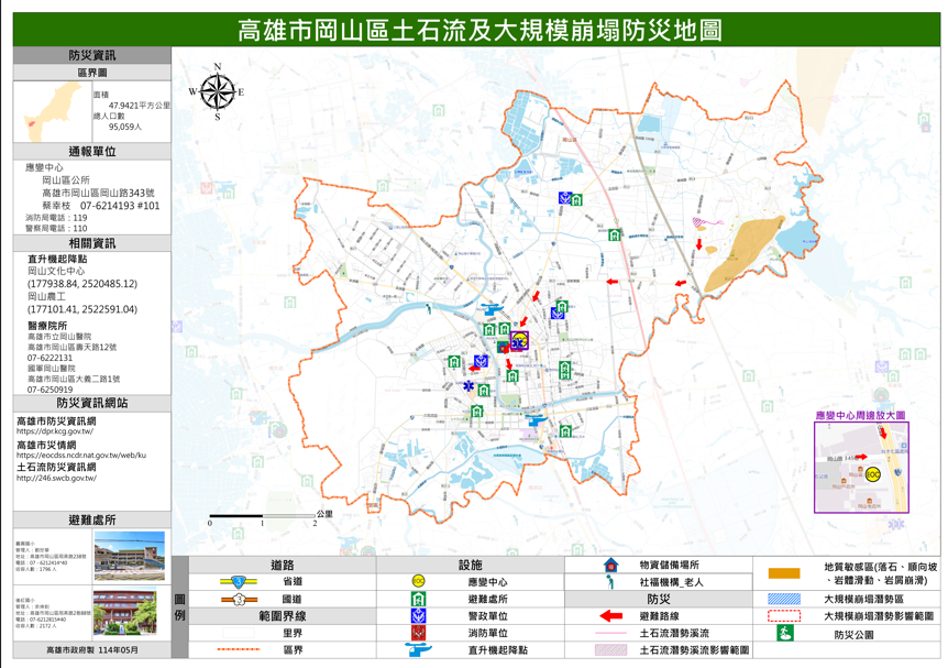 - 高雄市岡山區地震救災應變防災地圖 - 高雄市岡山區土石流及大規模崩塌防災地圖 - 高雄市岡山區毒化救災應變防災地圖 - 高雄市岡山區海嘯救災應變防災地圖 - 高雄市岡山區複合型災害救災應變防災地圖 - 高雄市岡山區淹水救災應變防災地圖_350 - 高雄市岡山區淹水救災應變防災地圖_500 - 高雄市岡山區淹水救災應變防災地圖_650